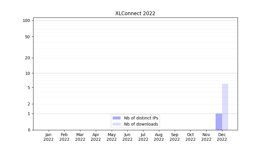 Number of downloads for software package XLConnect, year by year, from 2025 back to 2014 (years with no downloads are omitted):