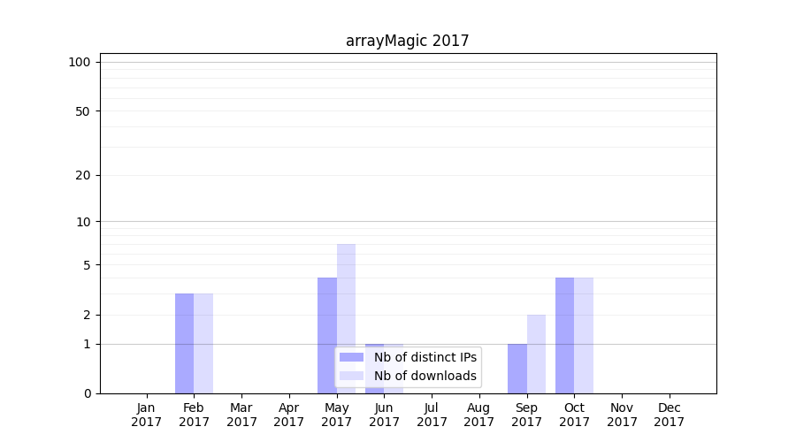 arrayMagic_2017_stats.tab| Month | Nb of distinct IPs | Nb of downloads |