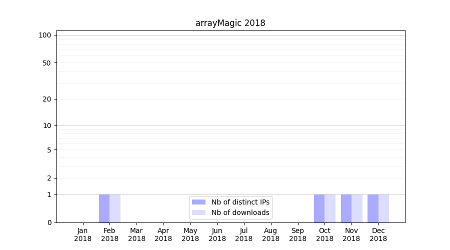 arrayMagic_2018_stats.tab| Month | Nb of distinct IPs | Nb of downloads |