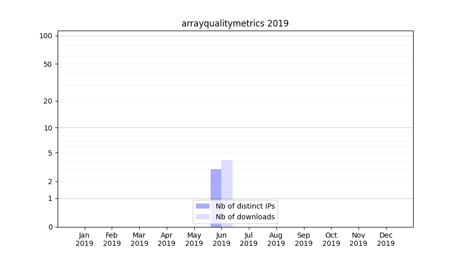 Number of downloads for software package arrayqualitymetrics, year by year, from 2025 back to 2014 (years with no downloads are omitted):