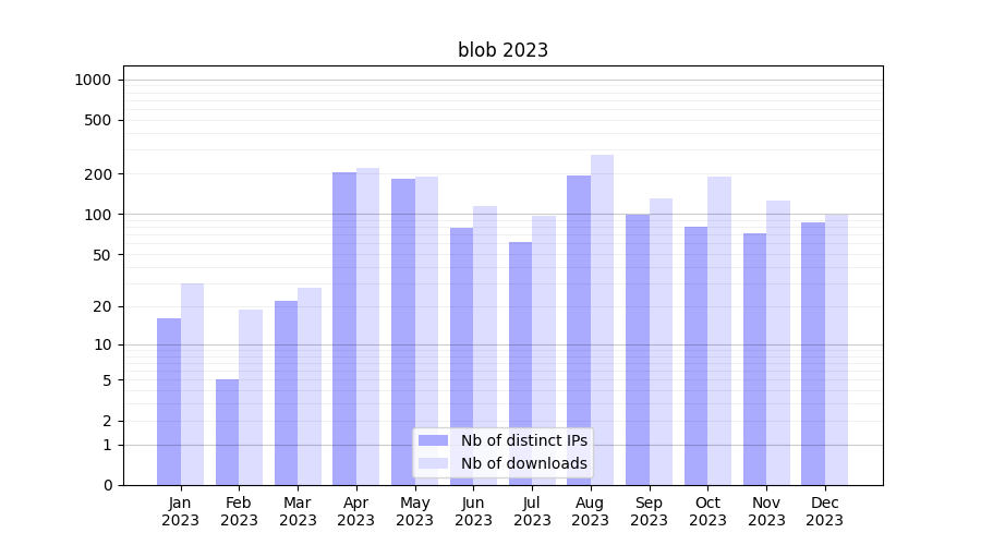 blob_2023_stats.tab| Month | Nb of distinct IPs | Nb of downloads |