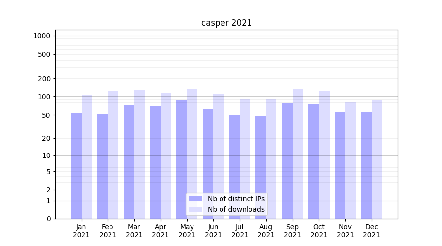 Number of downloads for software package casper, year by year, from 2025 back to 2014 (years with no downloads are omitted):