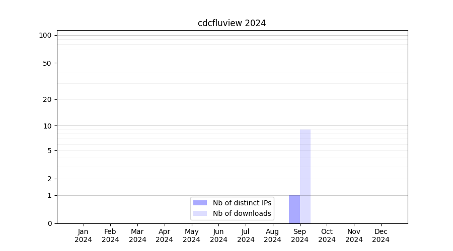 Number of downloads for software package cdcfluview, year by year, from 2025 back to 2014 (years with no downloads are omitted):