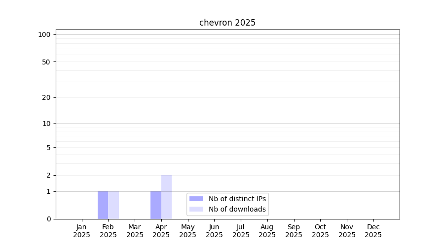 Number of downloads for software package chevron, year by year, from 2025 back to 2014 (years with no downloads are omitted):