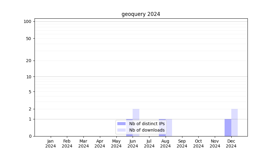 Number of downloads for software package geoquery, year by year, from 2025 back to 2014 (years with no downloads are omitted):