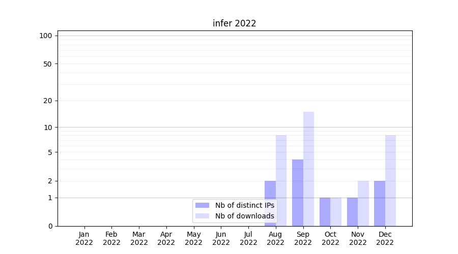 Number of downloads for software package infer, year by year, from 2025 back to 2014 (years with no downloads are omitted):