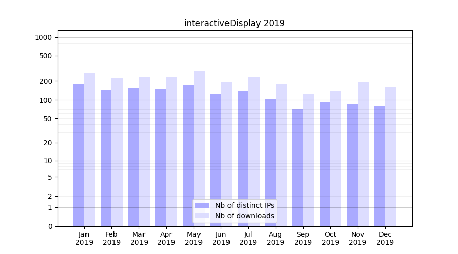 interactiveDisplay_2019_stats.tab| Month | Nb of distinct IPs | Nb of downloads |