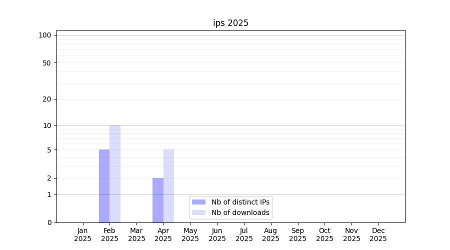Number of downloads for software package ips, year by year, from 2025 back to 2014 (years with no downloads are omitted):
