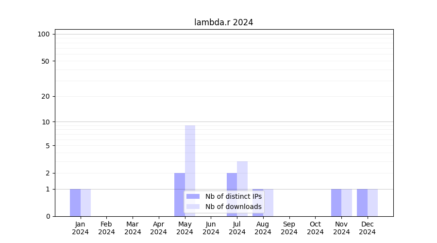 lambda.r_2024_stats.tab| Month | Nb of distinct IPs | Nb of downloads |