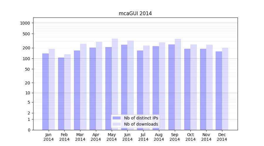 mcaGUI_2014_stats.tab| Month | Nb of distinct IPs | Nb of downloads |