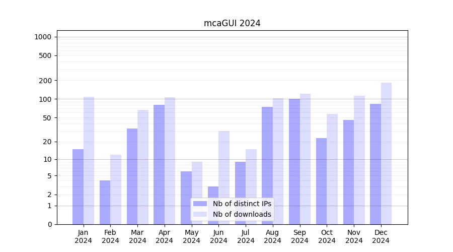 mcaGUI_2024_stats.tab| Month | Nb of distinct IPs | Nb of downloads |