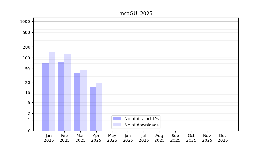 mcaGUI_2025_stats.tab| Month | Nb of distinct IPs | Nb of downloads |