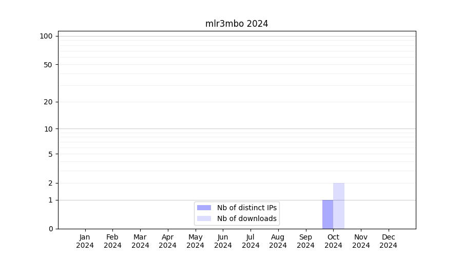 Number of downloads for software package mlr3mbo, year by year, from 2025 back to 2014 (years with no downloads are omitted):