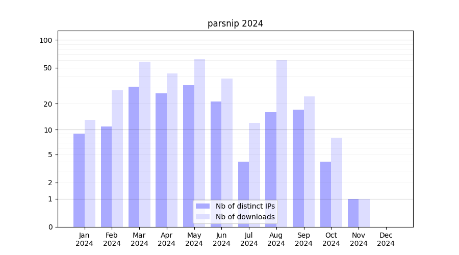 parsnip_2024_stats.tab| Month | Nb of distinct IPs | Nb of downloads |