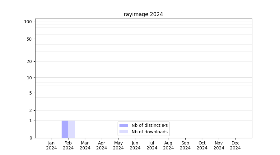 Number of downloads for software package rayimage, year by year, from 2025 back to 2014 (years with no downloads are omitted):
