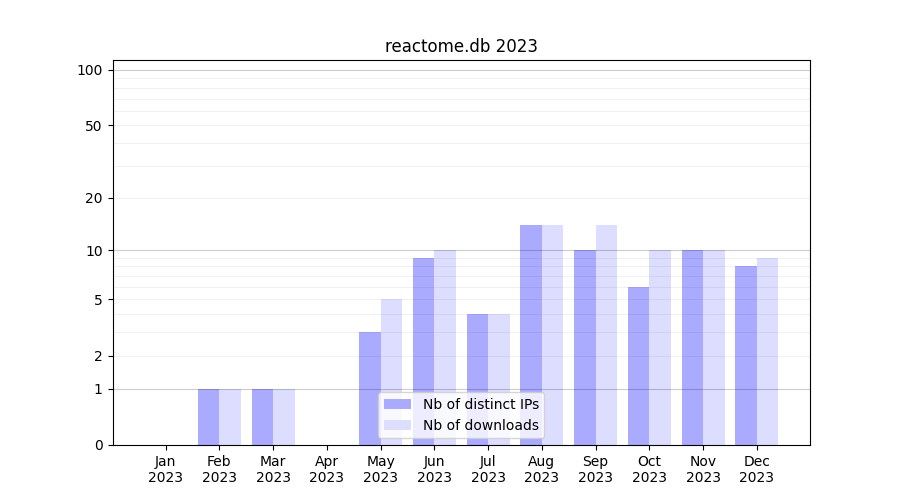 reactome.db_2023_stats.tab| Month | Nb of distinct IPs | Nb of downloads |