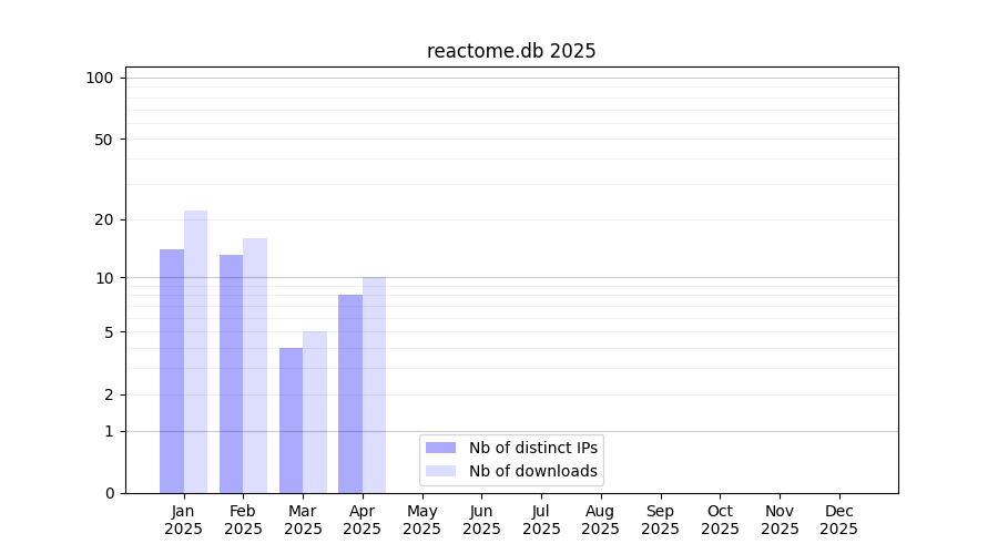 reactome.db_2025_stats.tab| Month | Nb of distinct IPs | Nb of downloads |