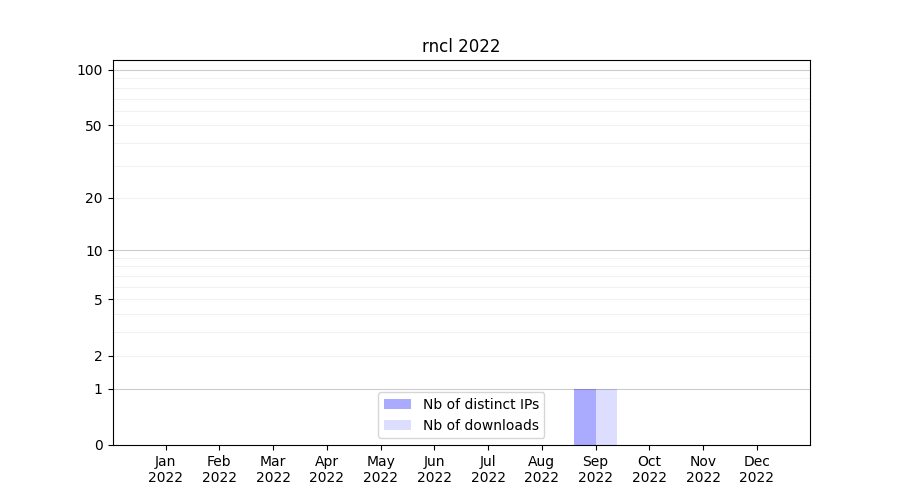 Number of downloads for software package rncl, year by year, from 2025 back to 2014 (years with no downloads are omitted):