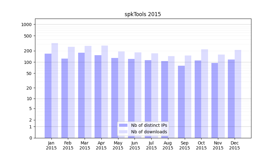spkTools_2015_stats.tab| Month | Nb of distinct IPs | Nb of downloads |