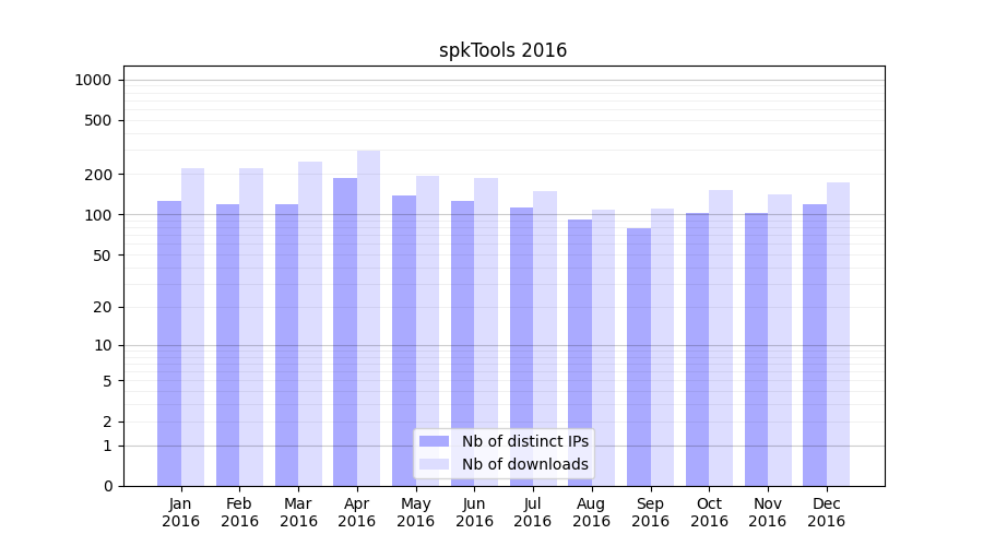 spkTools_2016_stats.tab| Month | Nb of distinct IPs | Nb of downloads |