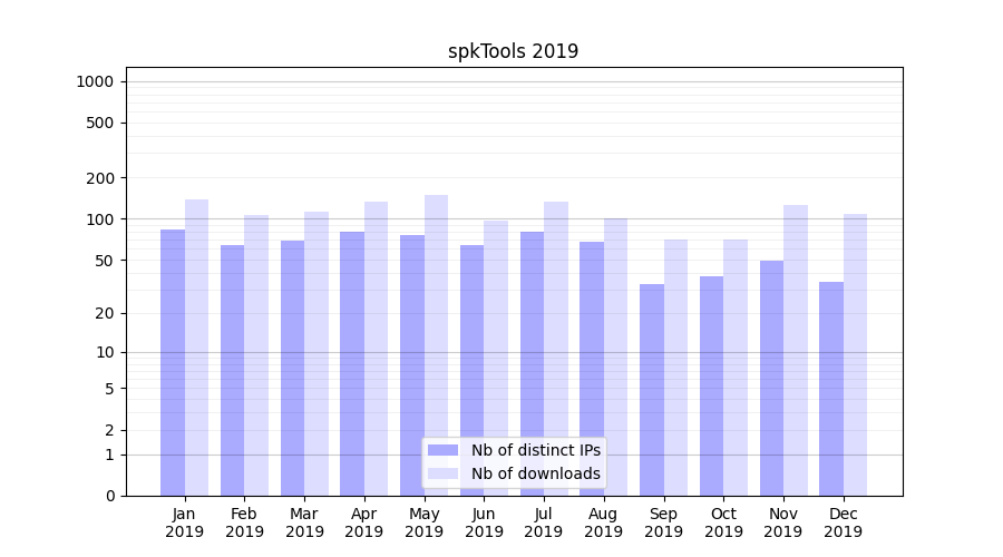 spkTools_2019_stats.tab| Month | Nb of distinct IPs | Nb of downloads |