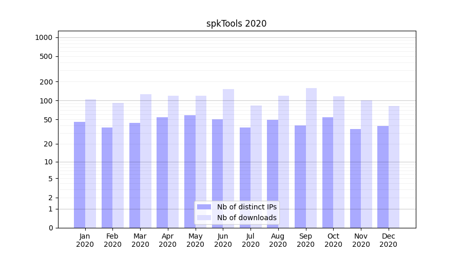 spkTools_2020_stats.tab| Month | Nb of distinct IPs | Nb of downloads |
