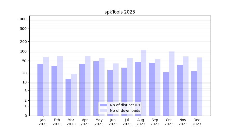 spkTools_2023_stats.tab| Month | Nb of distinct IPs | Nb of downloads |