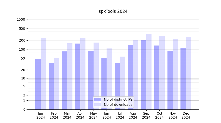 spkTools_2024_stats.tab| Month | Nb of distinct IPs | Nb of downloads |