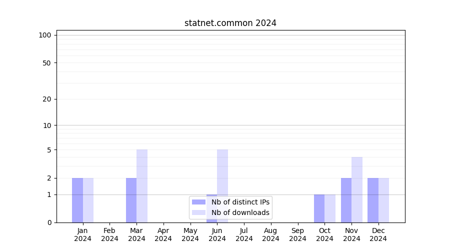 Number of downloads for software package statnet.common, year by year, from 2025 back to 2014 (years with no downloads are omitted):