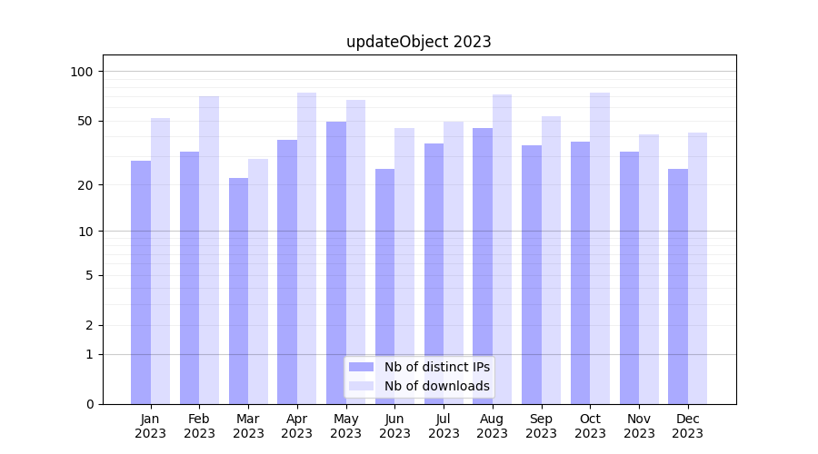 updateObject_2023_stats.tab| Month | Nb of distinct IPs | Nb of downloads |
