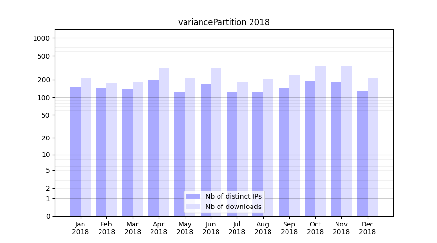 variancePartition_2018_stats.tab| Month | Nb of distinct IPs | Nb of downloads |
