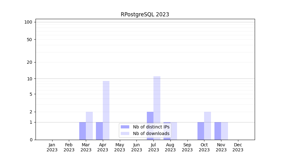 RPostgreSQL_2023_stats.tab| Month | Nb of distinct IPs | Nb of downloads |