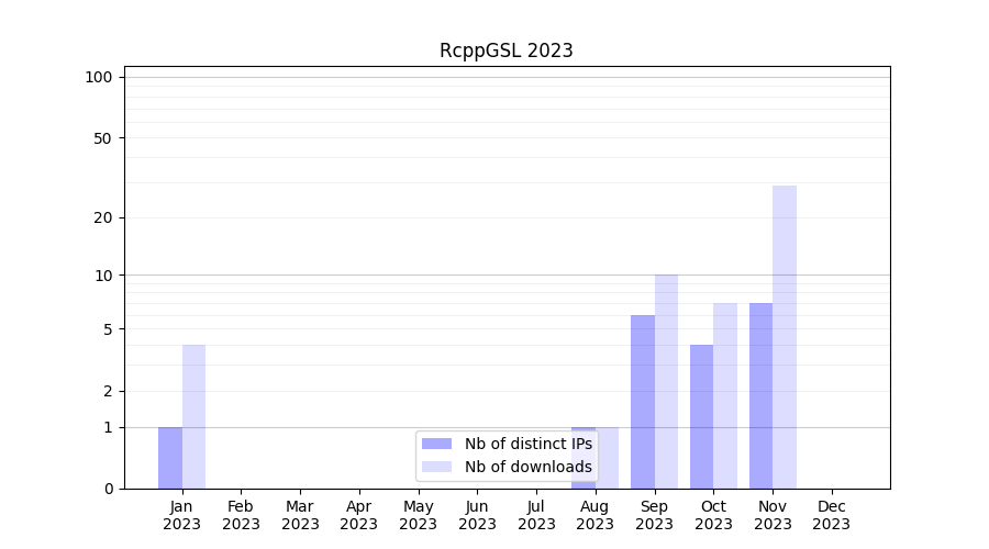 RcppGSL_2023_stats.tab| Month | Nb of distinct IPs | Nb of downloads |