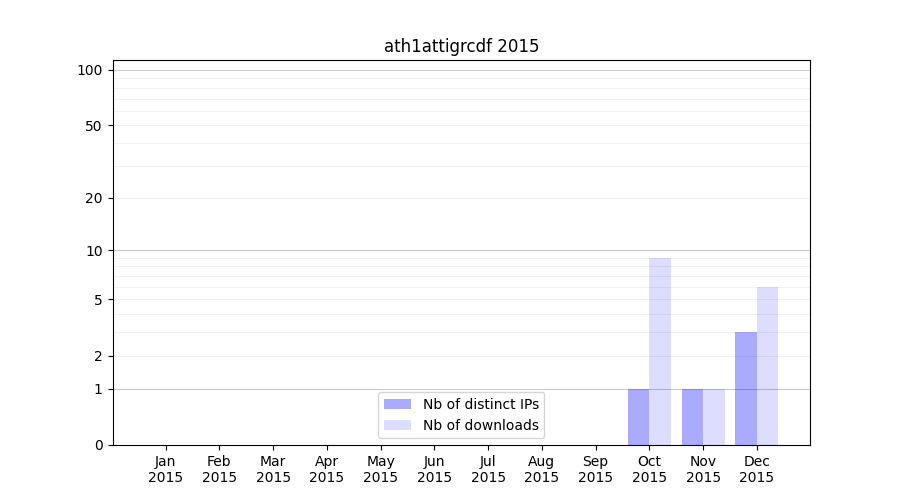 Number of downloads for annotation package ath1attigrcdf, year by year, from 2025 back to 2014 (years with no downloads are omitted):