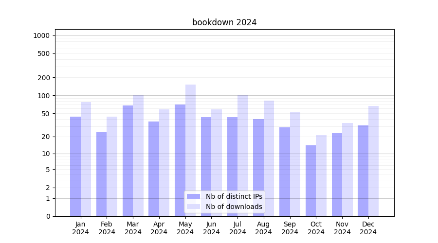 bookdown_2024_stats.tab| Month | Nb of distinct IPs | Nb of downloads |