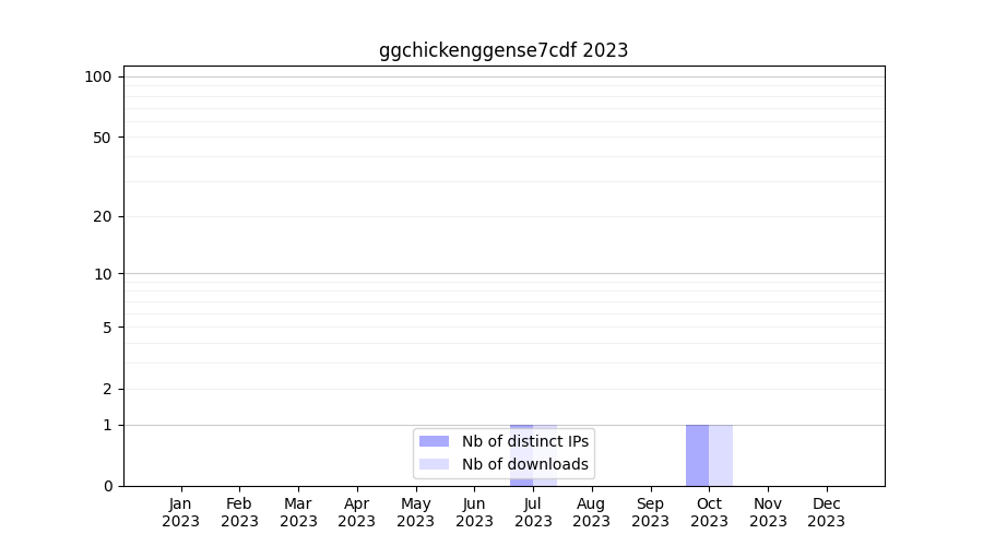 Number of downloads for annotation package ggchickenggense7cdf, year by year, from 2025 back to 2014 (years with no downloads are omitted):