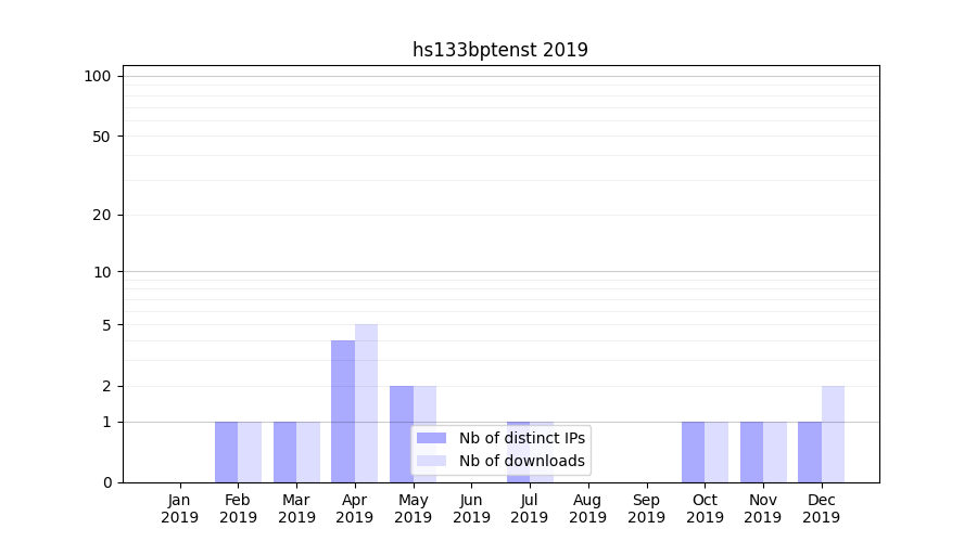 Number of downloads for annotation package hs133bptenst, year by year, from 2025 back to 2014 (years with no downloads are omitted):