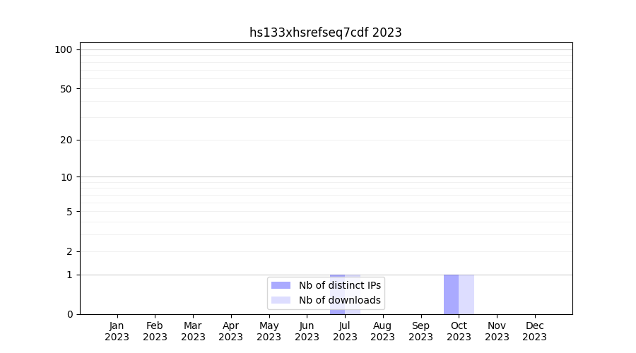 Number of downloads for annotation package hs133xhsrefseq7cdf, year by year, from 2025 back to 2014 (years with no downloads are omitted):