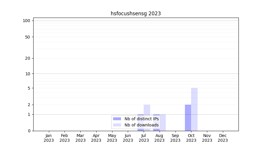 Number of downloads for annotation package hsfocushsensg, year by year, from 2025 back to 2014 (years with no downloads are omitted):