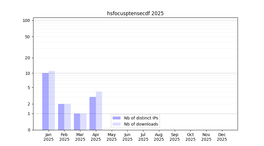 Number of downloads for annotation package hsfocusptensecdf, year by year, from 2025 back to 2014 (years with no downloads are omitted):