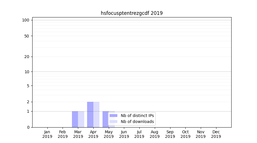 Number of downloads for annotation package hsfocusptentrezgcdf, year by year, from 2025 back to 2014 (years with no downloads are omitted):