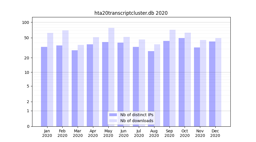 hta20transcriptcluster.db_2020_stats.tab| Month | Nb of distinct IPs | Nb of downloads |