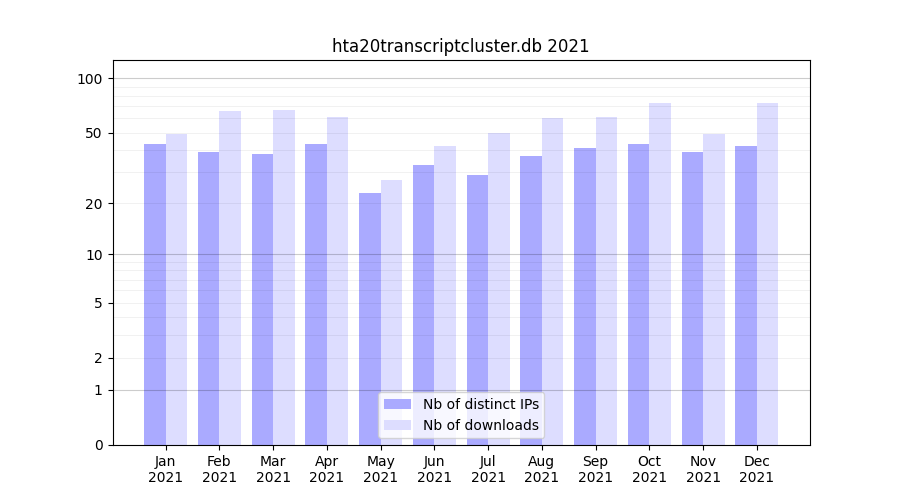 hta20transcriptcluster.db_2021_stats.tab| Month | Nb of distinct IPs | Nb of downloads |