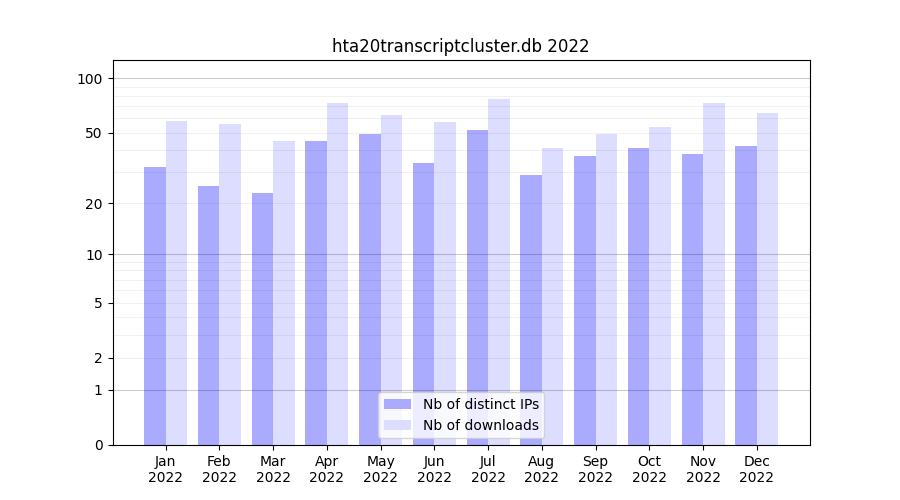 hta20transcriptcluster.db_2022_stats.tab| Month | Nb of distinct IPs | Nb of downloads |