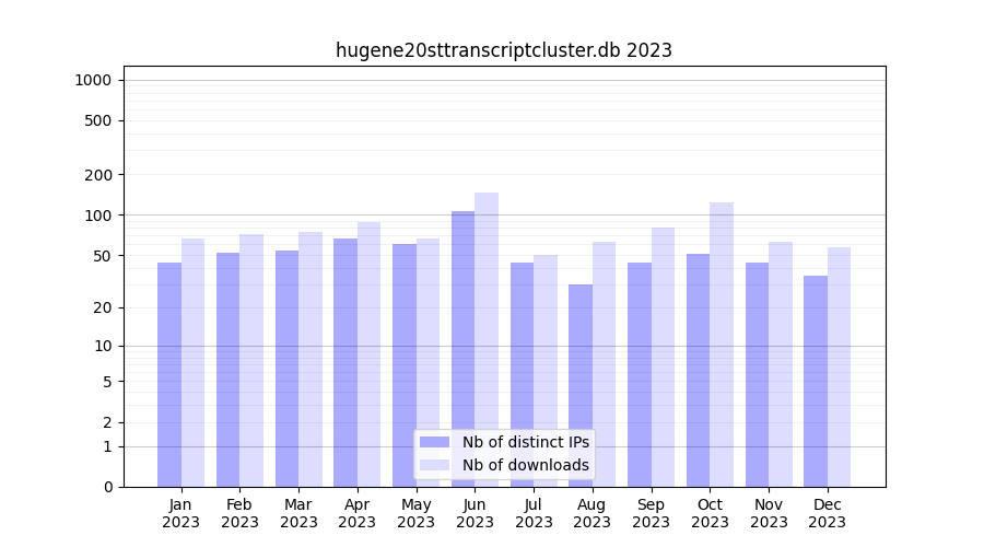 hugene20sttranscriptcluster.db_2023_stats.tab| Month | Nb of distinct IPs | Nb of downloads |