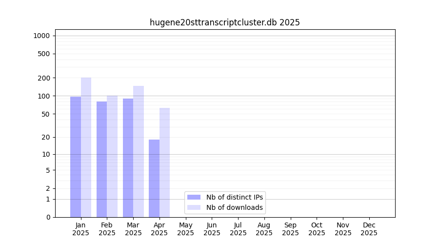 hugene20sttranscriptcluster.db_2025_stats.tab| Month | Nb of distinct IPs | Nb of downloads |
