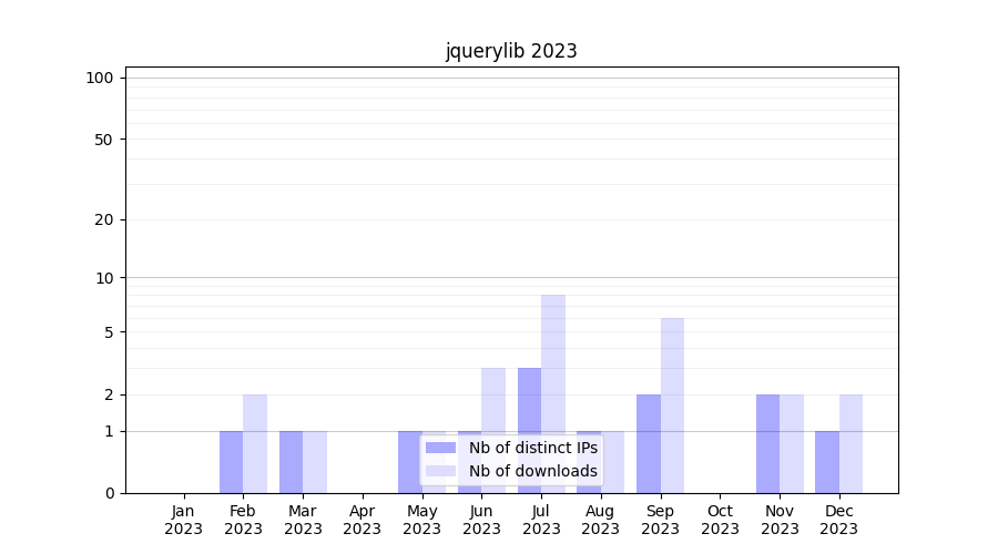 jquerylib_2023_stats.tab| Month | Nb of distinct IPs | Nb of downloads |