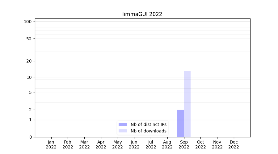 Number of downloads for annotation package limmaGUI, year by year, from 2025 back to 2014 (years with no downloads are omitted):
