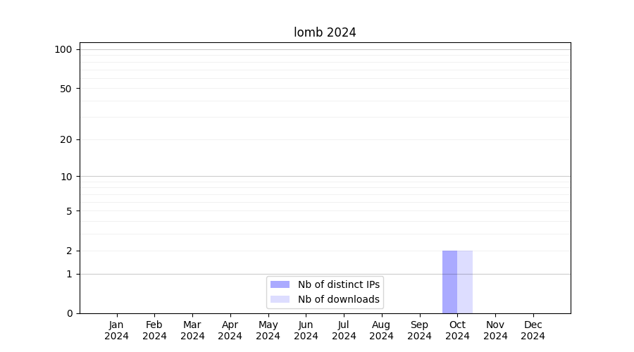 Number of downloads for annotation package lomb, year by year, from 2025 back to 2014 (years with no downloads are omitted):