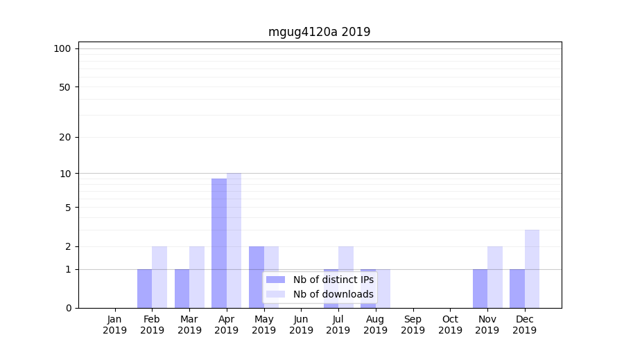 Number of downloads for annotation package mgug4120a, year by year, from 2025 back to 2014 (years with no downloads are omitted):
